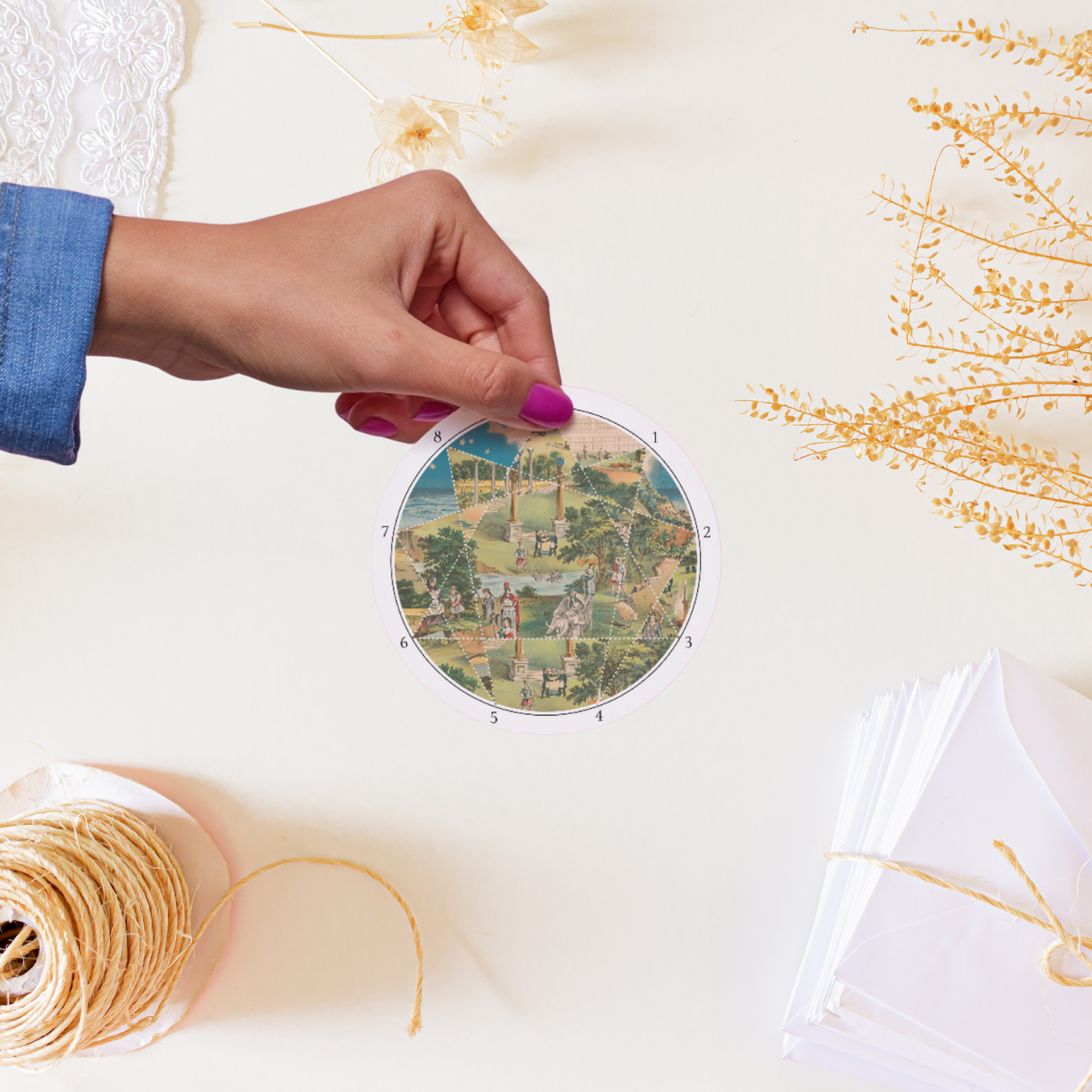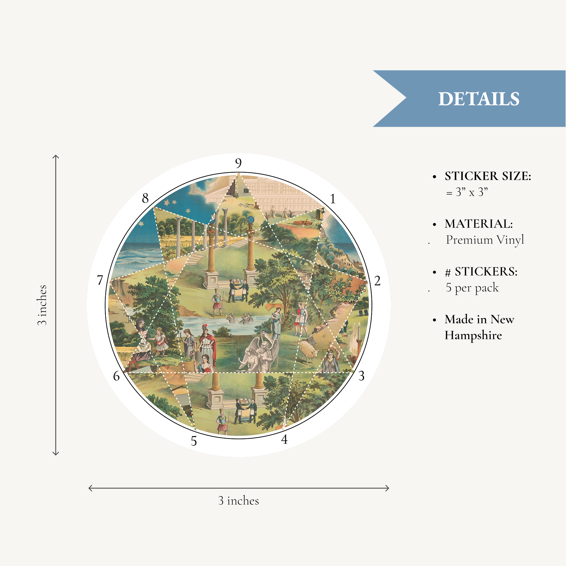 Our premium Enneagram World Circle Sticker feature intricate vintage artwork overlaid with the Enneagram symbol, offering a unique and elegant representation of the nine personality types. A thoughtful gift for Enneagram enthusiasts; whether you’re a deep thinker, an artist, or a seeker of wisdom, this sticker is a beautiful reminder of the complexity and richness of the Enneagram.