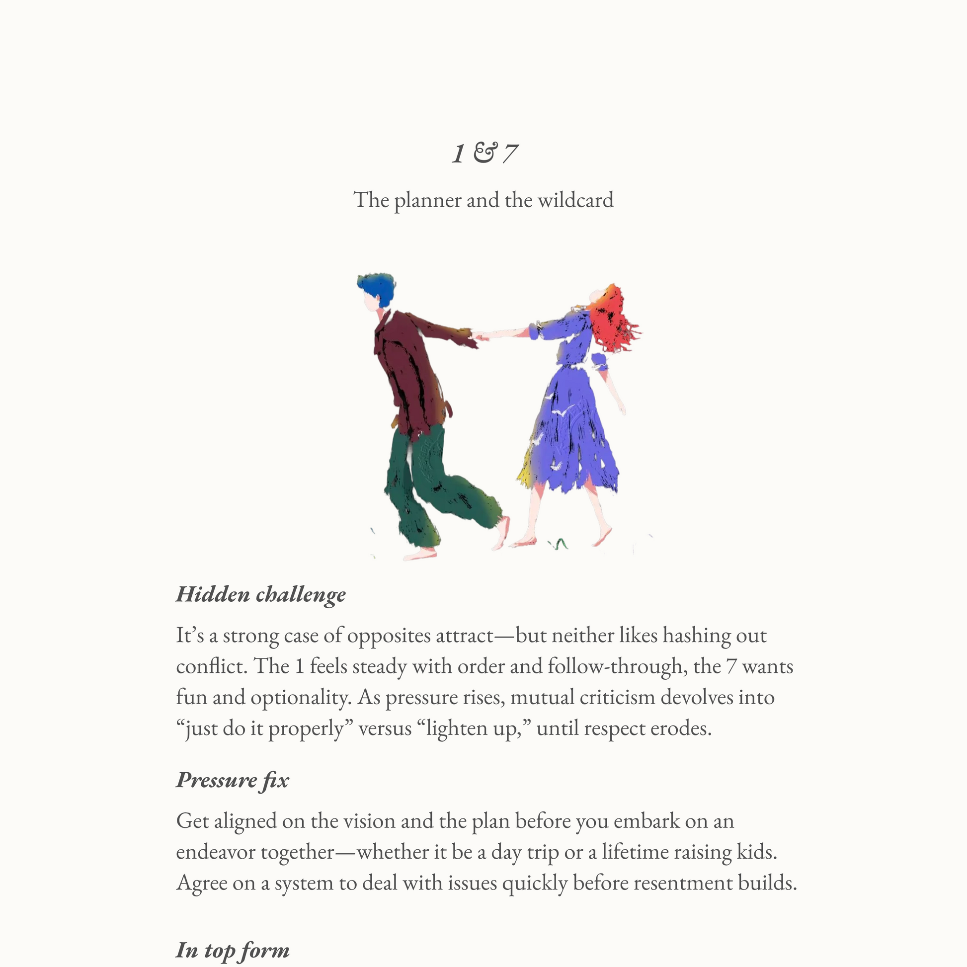 Inside are type compatibility matrices, probability charts, red and green flags, and reflection exercises designed to help you understand attraction, recurring conflict, and what makes love last.
