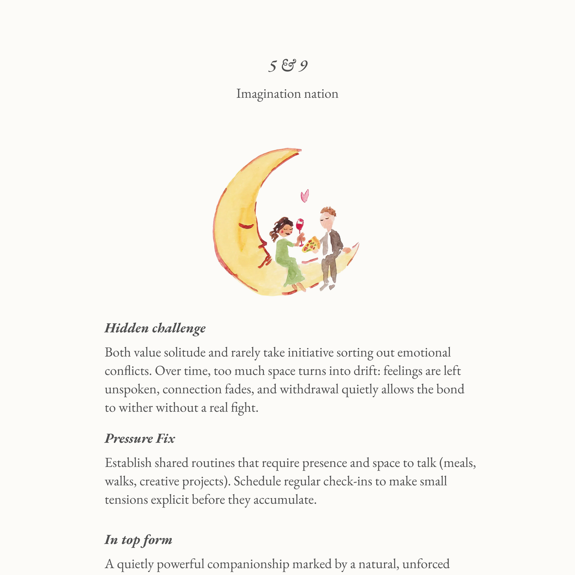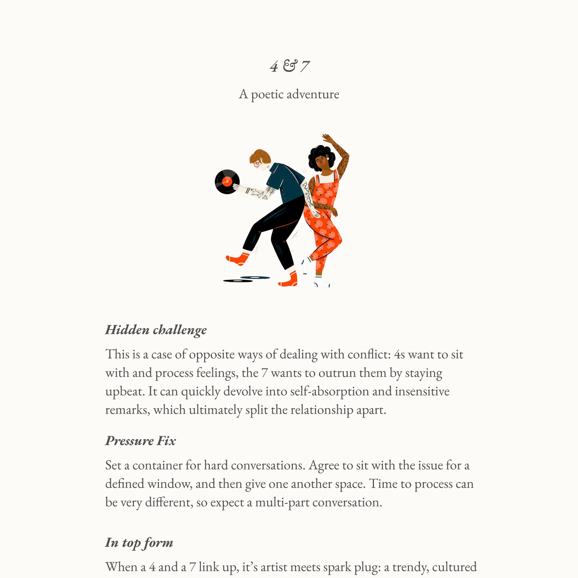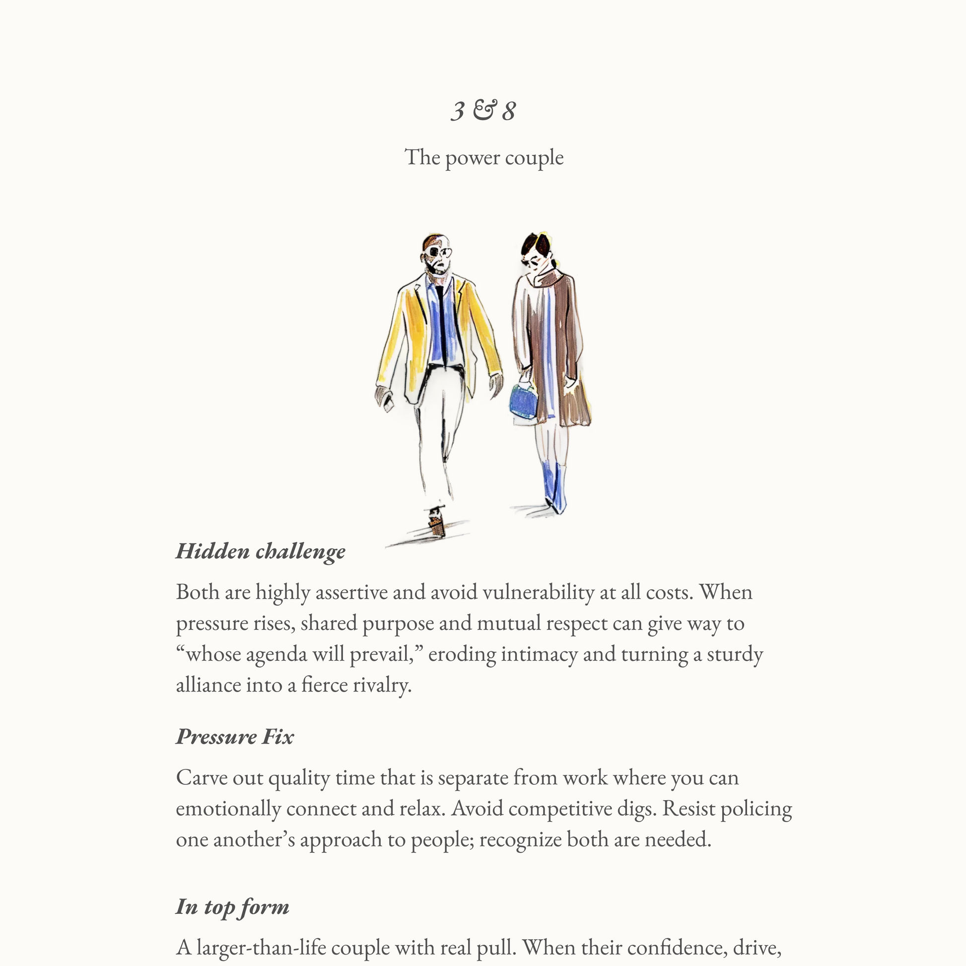 All of the Enneagram pairings in one place! 45 pages of types in love, a full page dedicated to each romantic pair. Each pairing includes a core hidden challenge, how to fix it quickly, and what the duo looks like at their very best.